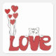 Sticker Carré Cute Chat Love Typographie Coeurs rouges | Valenti