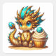 Sticker Carré Cute Chibi Gold et Blue Dragon avec Cupcake
