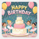 Cute Happy Birthday with balloons and ballerina dancers, cake and confetti.