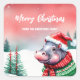 Sticker Carré Cute HIPPO zoo animal Père Noël Noël
