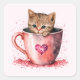 Sticker Carré Cute Kitten dans un Teacup avec les coeurs