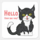 Sticker Carré Cute Kitten Kitty Cartoon noir Chat Bonjour