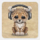 Sticker Carré Cute Leopard Cub Dj Porte Un Casque