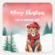 Sticker Carré Cute Lion animal sauvage Père Noël fêtes de Noël e