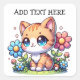 Sticker Carré Cute Orange Kitty Chat en Fleurs Personnalisé