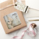 Autocollants d'affaires avec une photo de chéri d'un mignon ours en peluche, debout près d'un mur en bois rustique / fond.
