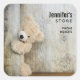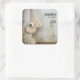 Sticker Carré Cute Ours Stuffé Rustique Mur en Bois