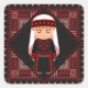 Sticker Carré cute Palestinian girl Embroidery red tatreez