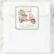 Sticker Carré Cute Pink and Aqua Coastal Scooter