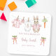 Sticker Carré Cute Pink Bunny Girl Clothesline Book Plate