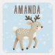 Sticker Carré Cute Reindeer Snowflakes Kids Name Christmas