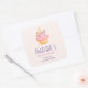 Sticker Carré Cute rose Cupcake Unicorn avec Rose