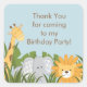Commencez votre fête d'anniversaire dans la jungle de safari avec nos adorables autocollants de fête d'anniversaire animaux de safari. Nos autocollants de remerciement ont un lion et un éléphant de girafe sur un arrière - plan bleu clair avec des feuilles de jungle. Visitez notre boutique pour obtenir des cartes de remerciements, des invitations à l'anniversaire, des autocollants de remerciement et des timbres-poste assortis. © Clementine