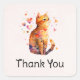 stickers Merci avec une adorable illustration aquarelle. Un chat tabby orange qui a l'air amical et heureux de voir les coeurs tourbillonner autour.