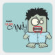 C'est un mignon autocollant de saison d'Halloween, avec une image de dessin animé d'un monstre Zombie avec des yeux délirants et beaucoup de dents ! Le texte à gauche dit "Besoin de bonbons plus" en noir et rouge. L'image et le texte sont placés sur un arrière - plan turquoise.