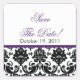 Sticker Carré Damas noir et violet Enregistrer la date Mariage s