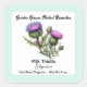 étiquette de produit autocollant carré avec design de chardon de lait et lignes de texte personnalisées. Les étiquettes blancs ont une bordure vert mousse pâle. Des images de chardon de lait pourpre et épicé ornent le centre, avec le nom de l'entreprise au sommet. Customisez trois lignes supplémentaires avec le nom du produit, l'information et tout texte nécessaire.
