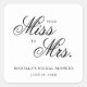 Sticker Carré De Miss à Mrs Calligraphie Élégante pour la Mariée