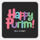 Coloré personnalisé Happy Purim carré autocollant avec arrière - plan noir.
