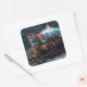 Sticker Carré Décor de Noël Oriental Blue Cat Snowy Sleigh