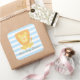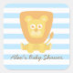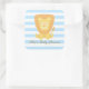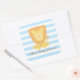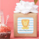 Joli lion assis avec des rayures bleues et blanches arrière - plan. Personnaliser avec le message.. La palette de couleurs convient aux garçons et le lion est également adapté aux enfants avec le signe de zodiaque Leo né du 22 juillet au 23 août.