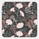 Sticker Carré Délicates oeillets roses avec fleurs Feuilles vert