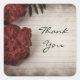 Un autocollant de remerciement avec une photo à thème floral automne. Papier à écritures recouvert d'une doublure défraîchie et de jolies fleurs rouges et des feuilles verts placés autour des bords. Merci écrit dans une police noire manuscrite élégante.