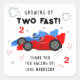 Deux Stickers personnalisés 2 Anniversaires Enfants Racing Cars avec le texte "Growing Up Two Fast" avec votre texte de remerciement personnalisé ci-dessous accentué avec des voitures de course colorées. Fabuleux pour les fêtes d'anniversaire des enfants. Conçu par Evco Studio www.zazzle.com/store/evcostudio
