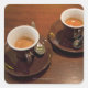 Sticker Carré deux tasses de café expresso fraîchement moulé sur