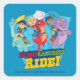 Ce design reflète l'esprit d'aventure et d'amitié qui définit Dino Ranch. Il présente le noyau de personnages humains de l'émission - Jon, Jane et Miguel - chevauchant leurs compagnons de dinosaures confiants. La scène est remplie d'énergie et de mouvement, alors que les coureurs et leurs dinosaures se lancent dans un voyage passionnant. Jon, Jane et Miguel, avec leurs expressions joyeuses, sont positionnés avec confiance sur leurs montures respectives. Les dinosaures, Blitz, Clover et Tango, rendus dans le style lumineux et amical signature du spectacle, présentent un éventail de personnalités et de poses. L'expression "DINO RANCHERS RIDE!" est affichée en évidence, ajoutant un sentiment d'excitation et d'aventure à la scène. Le design global est dynamique et dynamique, reflétant le plaisir et l'excitation du monde Dino Ranch.