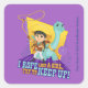 Ce design vibrant présente une scène de Dino Ranch, avec la jeune cowgirl déterminée Min, avec sa signature cheveux foncés dans une tresse, casquette cowboy jaune, gilet brun, pantalon blanc et bottes noires. Min twirille habilement son lasso, prête pour toute aventure de ranch. Clover, son sympathique brontosaurus bleu clair, avec une selle jaune, se tient fidèlement à ses côtés. L'arrière - plan éclate avec des formes géométriques violettes et jaunes dynamiques, ainsi qu'un emblème étoilé, renforçant l'atmosphère énergique et ludique du Ranch Dino. Le texte habilitant "I ROPE like A GIRL, ESSAIE TO KEEP UP !" est affiché en bas. Cette oeuvre reflète parfaitement l'esprit amusant, amical et aventureux de Dino Ranch, ce qui en fait un lieu idéal pour les fans du spectacle.