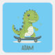 Sticker Carré Dinosaure De Skateboard Amusant Avec Nom Enfants