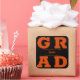 GRAD en lettres orange gras remplit les coins de ces autocollants carrés de diplômé sur fond noir. Félicitations au-dessus du nom de votre diplômé et la promotion en dessous. VOIR TOUTE LA COLLECTION de combinaisons de couleurs pré-faites, invitations, assiettes en carton, serviettes, pancartes et plus dans notre magasin.