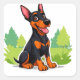 Sticker Carré Doberman Dessin Gai Assis À L'Extérieur