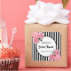 Sticker Carré Douche de mariée rayures noires et blanches fleurs