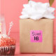Étiquette de 16 carrés douce avec étincelle de parties scintillant rose vif et noir gras.