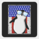 Pingouin cool avec lunettes de soleil devant un drapeau américain.