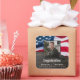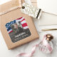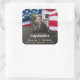 Stickers du Parti Patriotique Américain Drapeau Militaire Graduation Party. Ajoutez la touche finale à votre fête de graduation patriotique avec ce drapeau américain autocollants de fête de graduation patriotique. Drapeau américain design moderne rouge blanc et bleu sur bois rustique avec photo diplômée, ces autocollants patriotiques sont parfaits pour l'emballage cadeau, l'envoi d'invitations, les faveurs de fête et plus encore! Ces autocollants de graduation militaire sont également parfaits pour les parties de retraite militaire. Consultez notre collection pour obtenir des invitations à des diplômes militaires assortis, des cadeaux, des faveurs de fête et des fournitures. DROIT D'AUTEUR © 2021 Judy Burrows, Black Dog Art - Tous droits réservés. Sticker Carré Rustic Patriotic American Flag