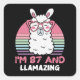 Sticker Carré Drôle Adorable Llama 87e Anniversaire Cadeau Pour