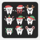 Sticker Carré Drôle Dental Noël Dents mignon Noël Dentiste
