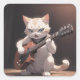 Sticker Carré Drôle Jouer Guitare Art Chat