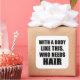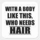 Si vous aimez les citations sarcastiques drôles ou de grands dessins humoristiques, ce slogan original " Avec un corps comme celui-ci, qui a besoin de cheveux? " est pour vous. C'est un grand cadeau pour votre famille, vos amis ou vous-même ! Ce design est idéal pour tous ceux qui aiment le sarcasme et l'humour. Si vous aimez cette citation drôle, découvrez d'autres oeuvres similaires dans le magasin Omitay. Restez en sécurité et merci de soutenir un artiste local.