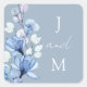 Sticker Carré Dusty Blue Monogram Floral Wedding Favoriser