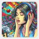 Sticker Carré Écouter de la musique sur les écouteurs Psychédéli