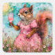 Un drôle d'écureuil avec une robe rose et des perles tenant un verre L'art généré par l'IA
