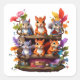 Sticker Carré Écureuils Sur Une Librairie En Bois