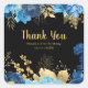 Sticker Carré Elegant Blue and Gold Flowers Birthday Party