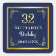 Sticker Carré Elegant Blue Gold 32nd Birthday Party