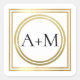 Cadres carré et ronds en or Faux, avec deux lettres initiales en police mince et élégante, pour un mariage et un emballage classe