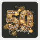 Sticker Carré Élégant Diamants Or Noir Bijou 50e Anniversaire